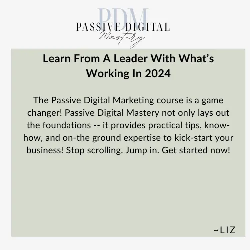 It’s not just about learning, it’s about applying. Passive Digital Mastery shows exactly how to use the skills and tools to set up, run, and grow a business that feels aligned, simple, and sustainable.